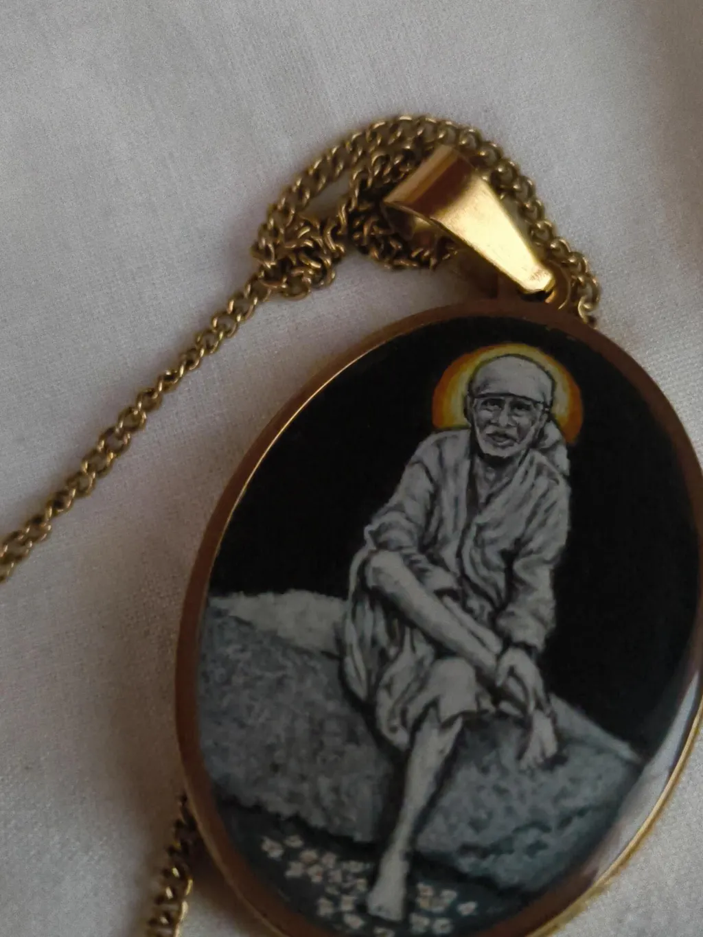 Abhinav created a beautiful painting of Sai Charan as a pendant. It is detailed and intricate and truly a masterpiece.